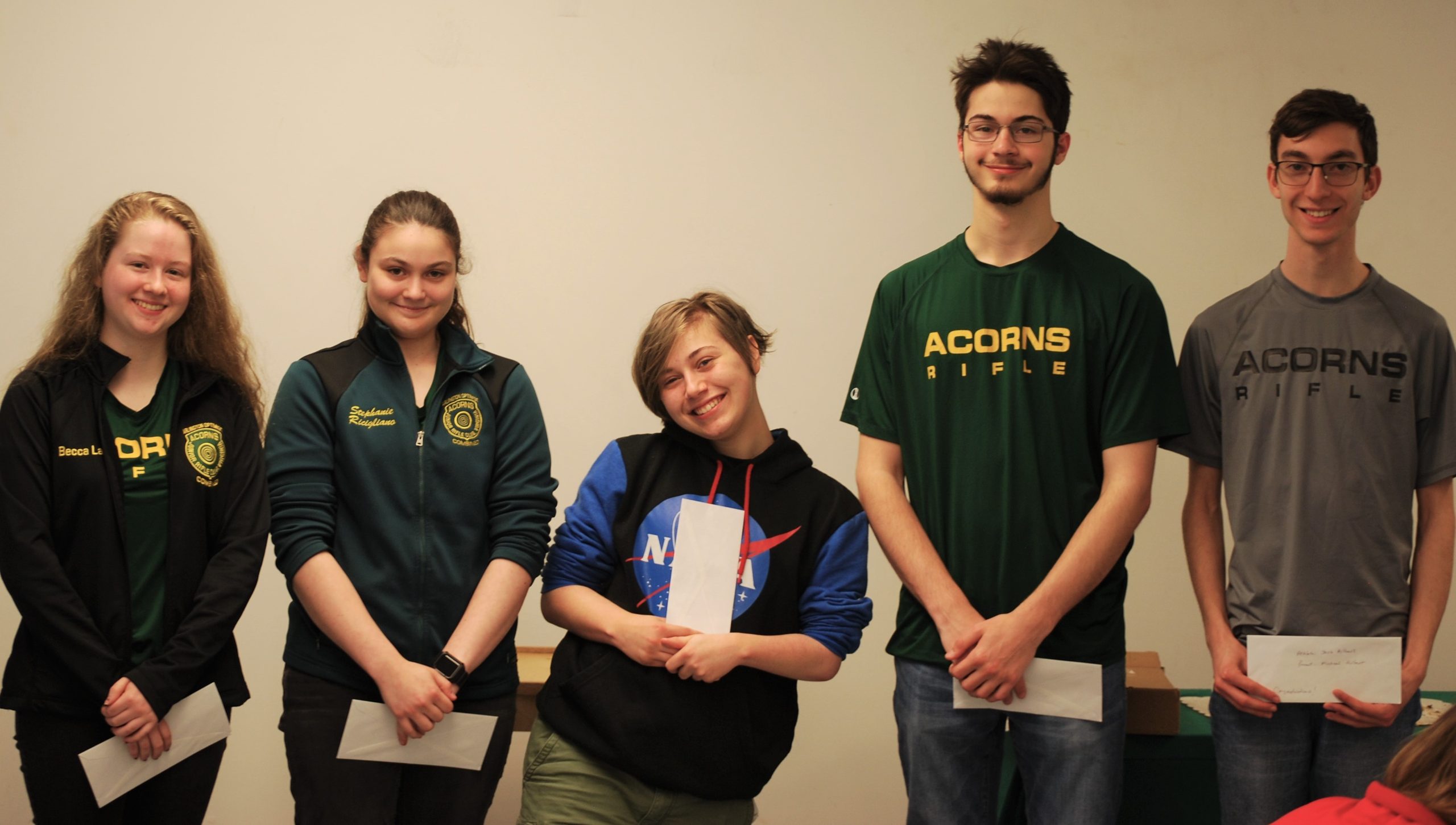 From left to right: Mark Whitenton, Scholarship Committee Chair; Mark McNulty (from Wakefield going to Johns Hopkins Peabody Institute); Mekyah Dunbar (from Wakefield –a winner last year — attending Old Dominion University); Laila El Machtani Idrissi (from Wakefield going to Virginia Tech); and Rick Escudero (from Yorktown going to UVA).